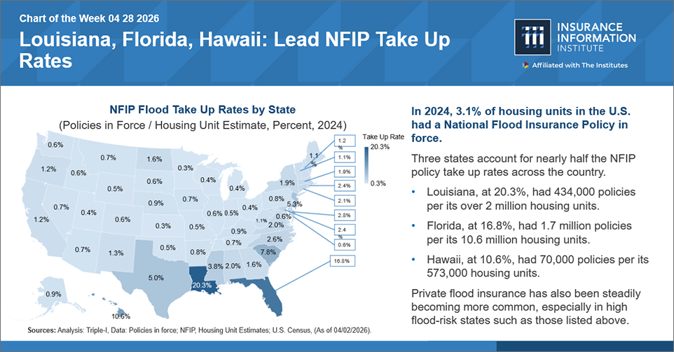 FOR IMMEDIATE RELEASE Media@iii.org MALVERN, Pa., April 14, 2026 – The Insurance Information Institute (Triple-I) has published a new members-only Issues Brief, Severe Convective Storms: State of the Risk, finding that tornadoes, hail, straight-line winds and severe thunderstorms caused $51 b… Read More