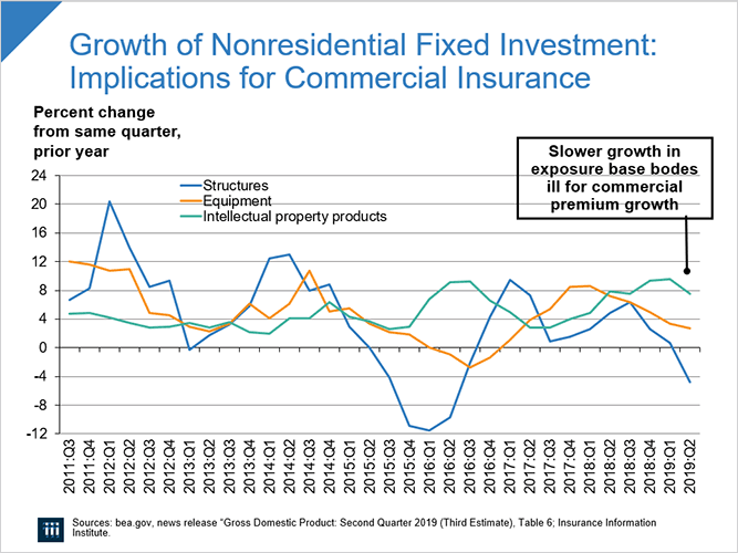 Figure 2 shows three types of business investment, all of which would imply increases in the purchase of commercial insurance. Also, those who financed new cars or homes had to purchase insurance coverage to satisfy the conditions of their loans.