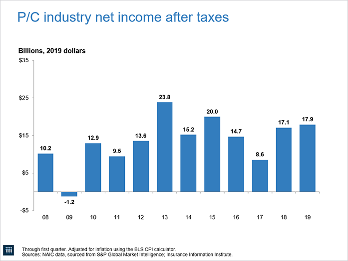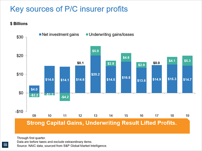 The P/C insurance industry turned in a profitable performance in the first quarter of 2019, buoyed by continued premium growth and good investment results. Policyholders’ surplus hit a record level. Fundamentally, the P/C insurance industry remains quite strong financially, with capital adequacy ratios remaining high relative to long-term historical averages.