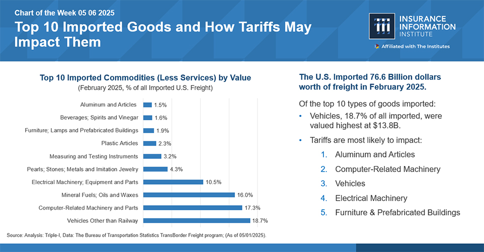 The Triple-I Chart of the Week provides weekly insight into the impact of economic releases on major P/C lines. Each chart focuses on a specific economic release from the Bureau of labor Statistics, Bureau of Economic Analysis and the Federal Reserve and both translates and summarizes each release’s impact on the P/C insurance industry. The Chart of the Week archive is a member benefit to Triple-I members only. Click here to learn more about membership. If you are a Triple-I member, please log in to the members-only portal on iii.org to view the Chart of the Week archive on the Welcome page. If you need assistance with your password or with finding the charts, please contact members@iii.org.
