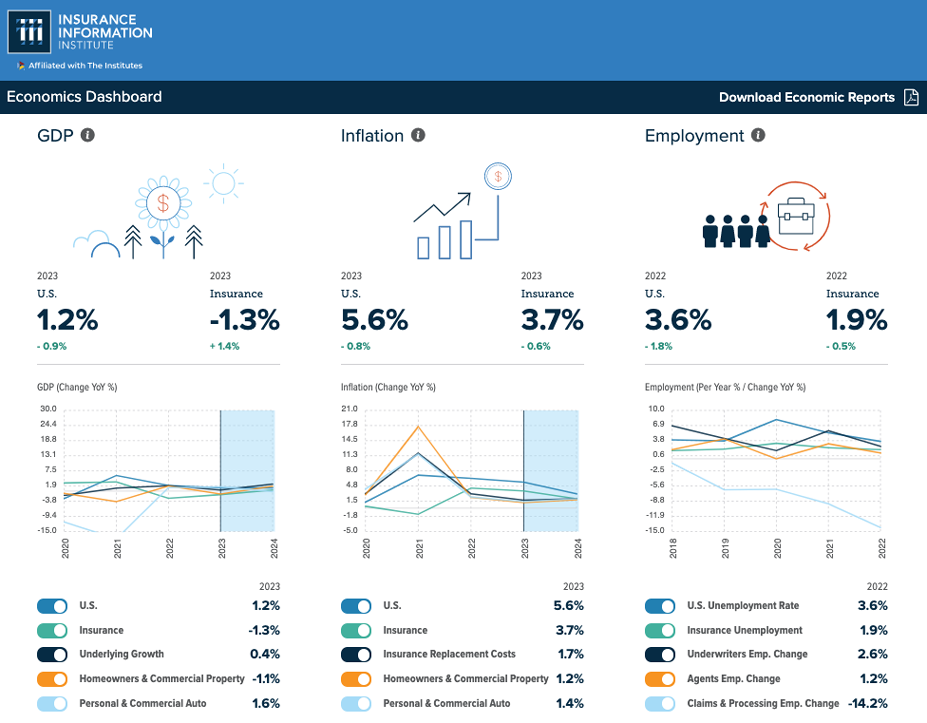 Triple-I members have access to additional products and services such as webinars, presentations, and content. The Insurance Economics team is also available to provide custom insight in response to members’ inquiries on issues ranging from insurance economics to data analytics.