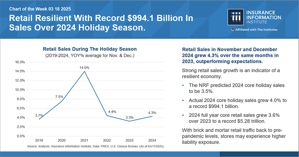 The Triple-I Chart of the Week provides weekly insight into the impact of economic releases on major P/C lines. Each chart focuses on a specific economic release from the Bureau of labor Statistics, Bureau of Economic Analysis and the Federal Reserve and both translates and summarizes each release’s impact on the P/C insurance industry. The Chart of the Week archive is a member benefit to Triple-I members only. Click here to learn more about membership. If you are a Triple-I member, please log in to the members-only portal on iii.org to view the Chart of the Week archive on the Welcome page. If you need assistance with your password or with finding the charts, please contact members@iii.org.