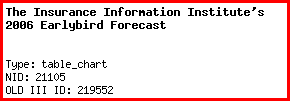 The average forecast calls for an increase in net written premiums of 4.7 percent in 2006, up from an estimated 2.5 percent in 2005. The 2006 forecast is a near doubling of the estimated figure for 2005 but is nearly identical to the actual growth figure in 2004. The spike in premium growth in 2006 is a direct result of analyst expectations that record catastrophe losses in 2005, totaling some $57 billion, have severely crimped capacity and caused insurers to reassess risk in catastrophe-prone regions of the Unites States. Analysts also expect that demand for insurance and reinsurance will increase even while supply is falling. The resulting supply/demand imbalance, it is reasoned, should spark a “mini-hard market,” pushing insurance and reinsurance prices for some types of coverage upward—property insurance and property catastrophe reinsurance coverage in particular. Some analysts believe that hard market conditions could spill over into casualty lines as well (e.g., general liability, worker compensation), stabilizing pricing if not pushing prices upward. Commercial property insurance and reinsurance coverage rates had been falling in year prior to Hurricane Katrina and homeowners insurance rates in most parts of the country were rising by only low single digits.