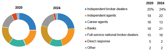 Sales Of Individual Annuities By Distribution Channels, 2020 And 2024