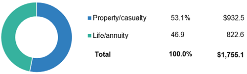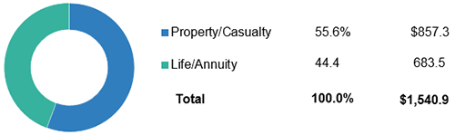 (1) Property/casualty: net premiums written after reinsurance transactions, excludes state funds; life/annuity: premiums, annuity considerations (fees for annuity contracts) and deposit-type funds. Both sectors include accident and health insurance.