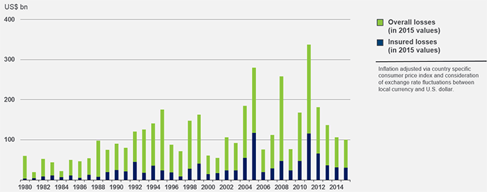 Source: © 2016 Munich Re, Geo Risks Research, NatCatSERVICE. As of January 2016.