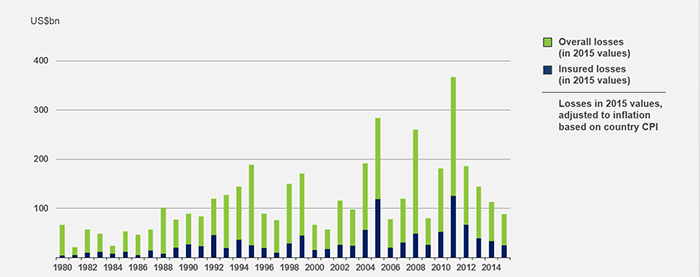 Source: © 2016 Munich Re, Geo Risks Research, NatCatSERVICE. As of March 2016.