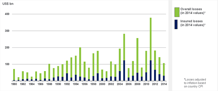 Source: © 2015 Munich Re, Geo Risks Research, NatCatSERVICE. As of January 2015.