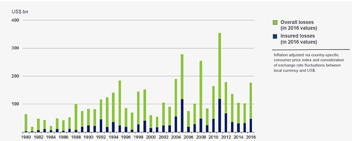 Source: © 2018 Munich Re, Geo Risks Research, NatCatSERVICE. As of January 2018.