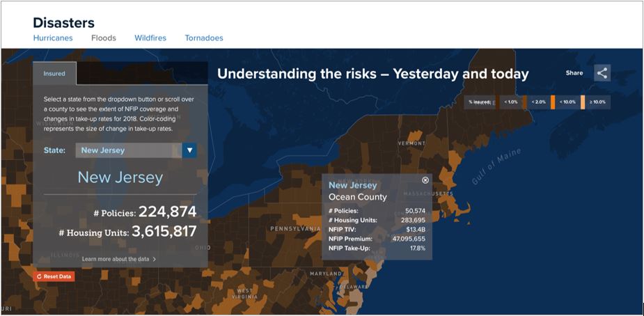 “Superstorm Sandy, which impacted the Northeast, including New Jersey and Long Island, was the deadliest and most destructive storm of the 2012 Atlantic hurricane season, causing billions of dollars in insured losses,” said Dr. Michel Leonard, CBE, Vice President and Senior Economist, Triple-I, who also gathered the content posted at the Triple-I’s Resilience Accelerator website. “Homeowners and business owners should use flood maps to better understand their current exposure which can help determine whether their insurance is adequate.”