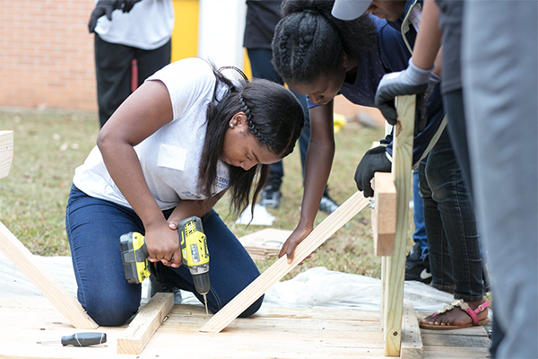 The scholars volunteered at schools in Decatur where the majority of students are on free or reduced lunches. Fifteen scholars worked at Southwest DeKalb High School where they built a community garden and picnic tables. The other 35 scholars were at Columbia Elementary School where they painted and landscaped. Many of the scholars are alumni of the two schools.